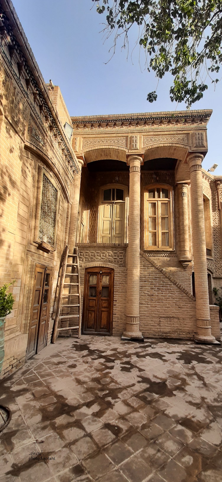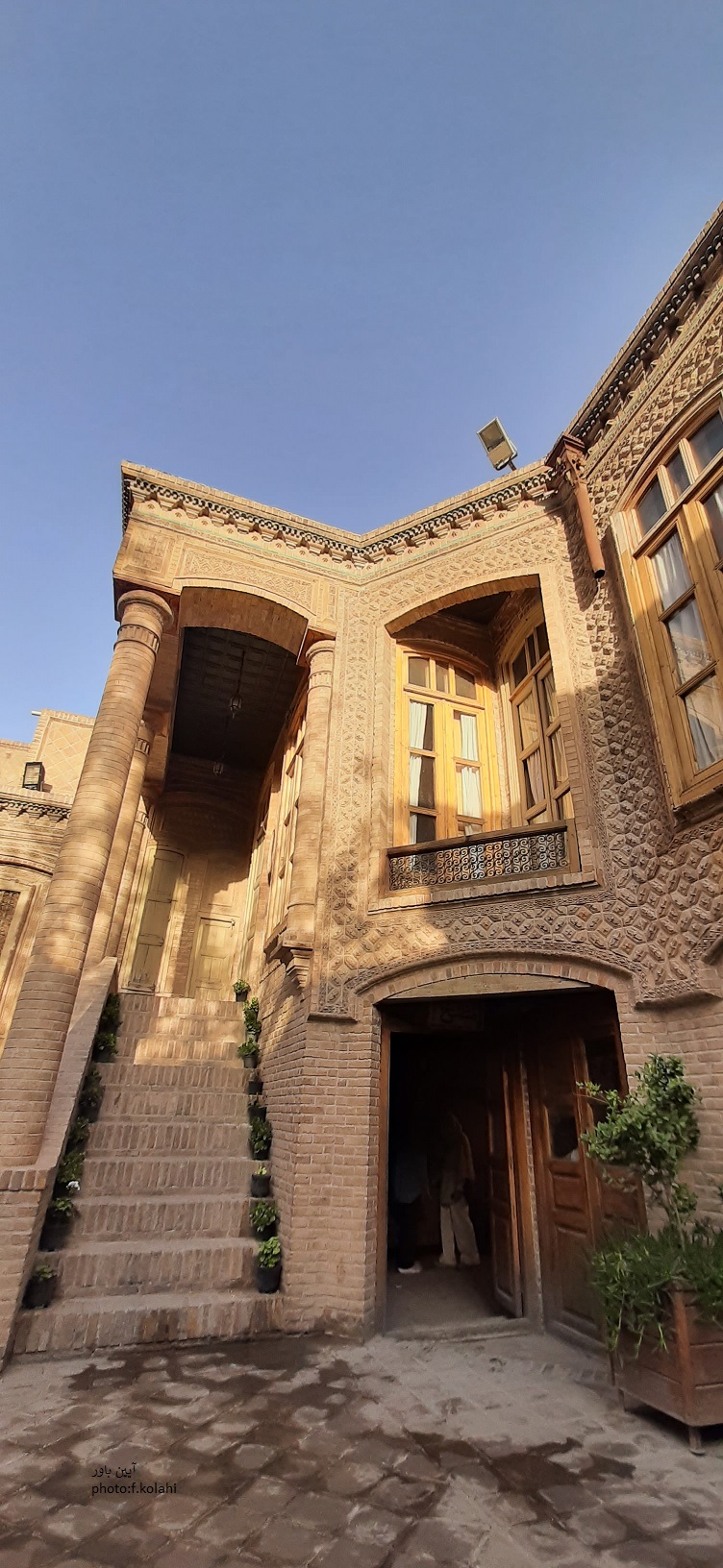 آجرهای دقیق و طاقنماهای قوسدار، ستونهای بلند و سقفهای چوبی، همگی جلوهای از اقتدار و ذوق معماران آن روزگار را نشان میدهند. هر پنجره مشبک، هر شیشه رنگی و هر قاب چوبی، گوشهای از زندگی گذشته را بازگو میکند و حس میدهد خانه هنوز نفس میکشد.